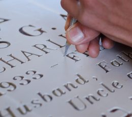 Add-on inscriptions for monuments and markers are done in the cemetery. We pay strict attention to the letter style and by what technique it was cut, in order to match the existing lettering. If you have a photograph of the memorial it would be very helpful to us in properly determining the exact lettering.