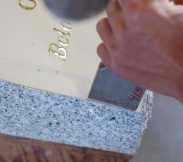 We must take a tracing of existing letters to ensure that the new lettering will match the old and that there is room for the new inscription. These are very important considerations to enable a good match to the existing letters. When taking the tracing of letters, we can determine the cost of cleaning and repainting the monument if the customer desires.
