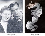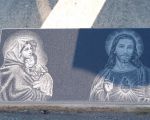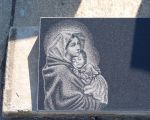 The etching process is done on black granite. We cement the etched portrait into the carved out hole on your stone. Etching can be done by laser or by hand. You can check our shop display to decide which process best suits you.